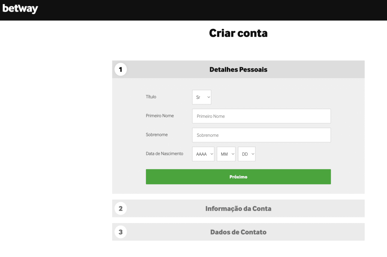 Registration in Betway is conditionally standard. You need to provide your own data and fill out an additional form. Verification involves the indication of information by the client from the name and surname to the country of residence. Additionally, you need to set limits for bets, if necessary (there are no strict requirements).