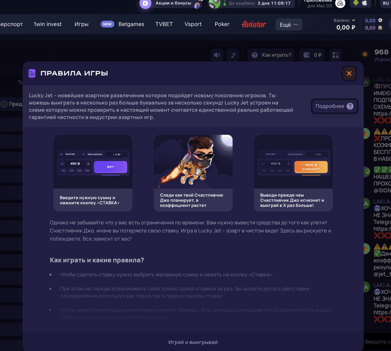 Игрок? Играй! LuckyJet поможет любителям азартных и интригующих развлечений не только провести время незабываемо, но и сорвать куш. Если повезет…