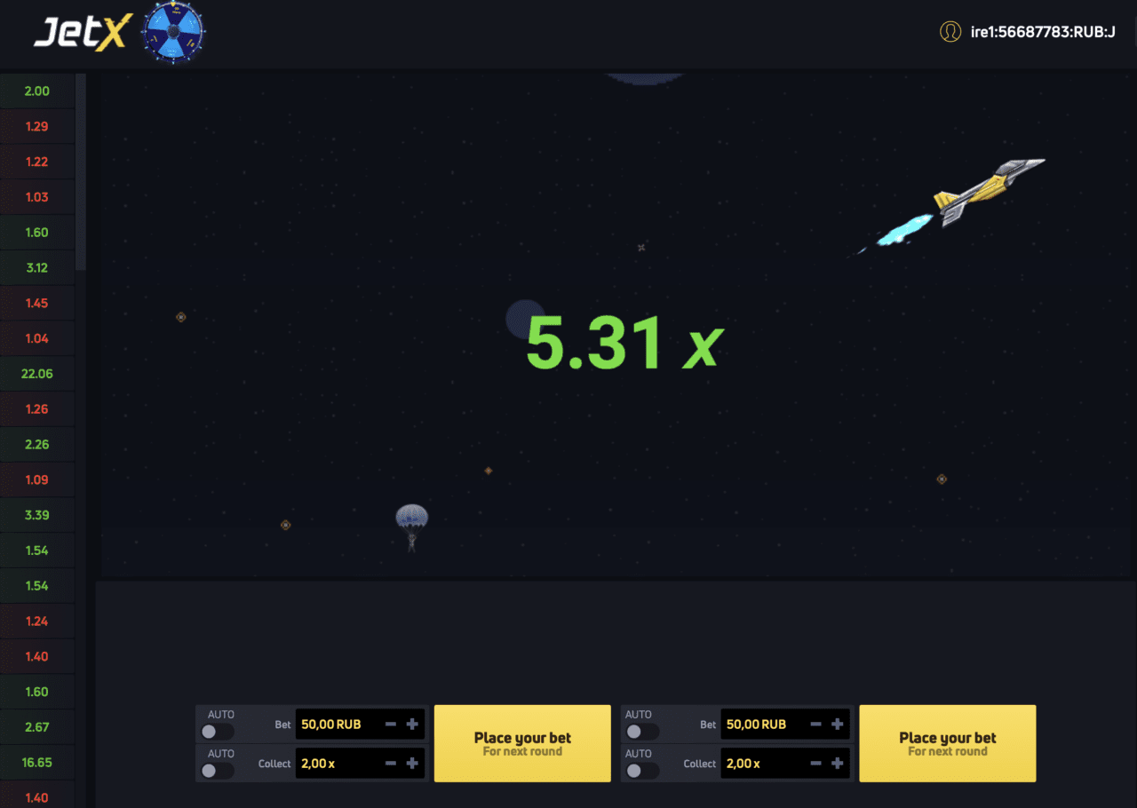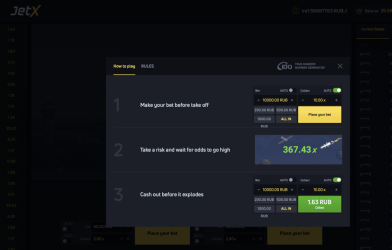 Shunchaki. Hamma narsa oddiy o’yin mashinasida bo’lgani kabi tartibga solingan. Biroq, Jet X ajablantiradigan element va o’yin atmosferasi bilan «tajribali». Bu shunchaki slot emas, balki tasodifiy sonlar generatori bilan integratsiyalangan to’liq yuqori aniqlikdagi GUI. Ikkinchisi hayajon muhitini yaratadi: o’yinchi natija qanday bo’lishini oldindan ayta olmaydi. U samolyotning o’z-o’zini yo’q qilishgacha bo’lgan parvoz davomiyligiga tikish huquqiga ega.