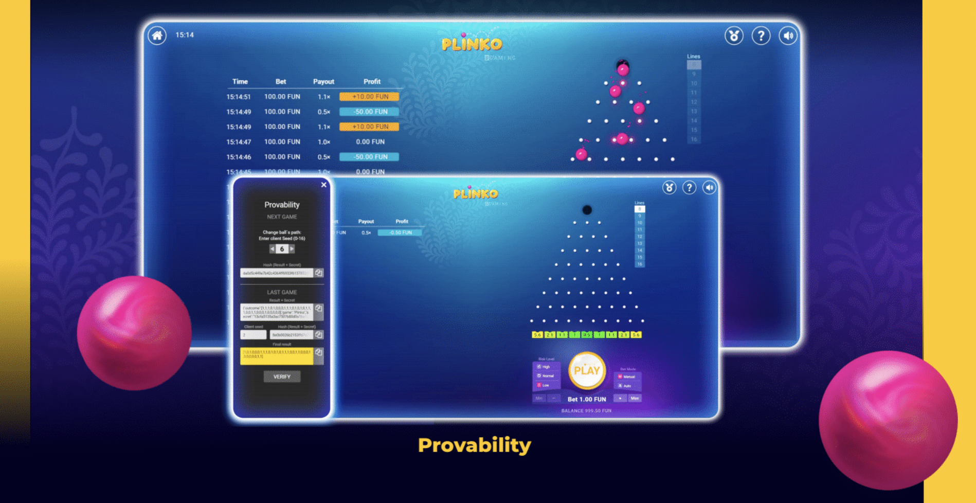 Bu mijozlarga o’z omadlarini sinab ko’rish va ko’p kuch sarflamasdan pul topish imkoniyatini taklif qiladigan ko’plab kazinolardan biridir. O’yin saytda yaqinda paydo bo’ldi, ammo ko’plab o’yinchilar Plinkoning qimor «diapazoni» ga kiritilganidan juda xursand bo’lishdi. Buni o’yin algoritmini aldash mumkin emasligi bilan izohlash mumkin. Bu Provably Fair texnologiyasi bilan bog’liq. Bu har bir tur natijasining halolligini ta’minlaydi, chunki qimorxona egalarining aralashuvi bundan mustasno.